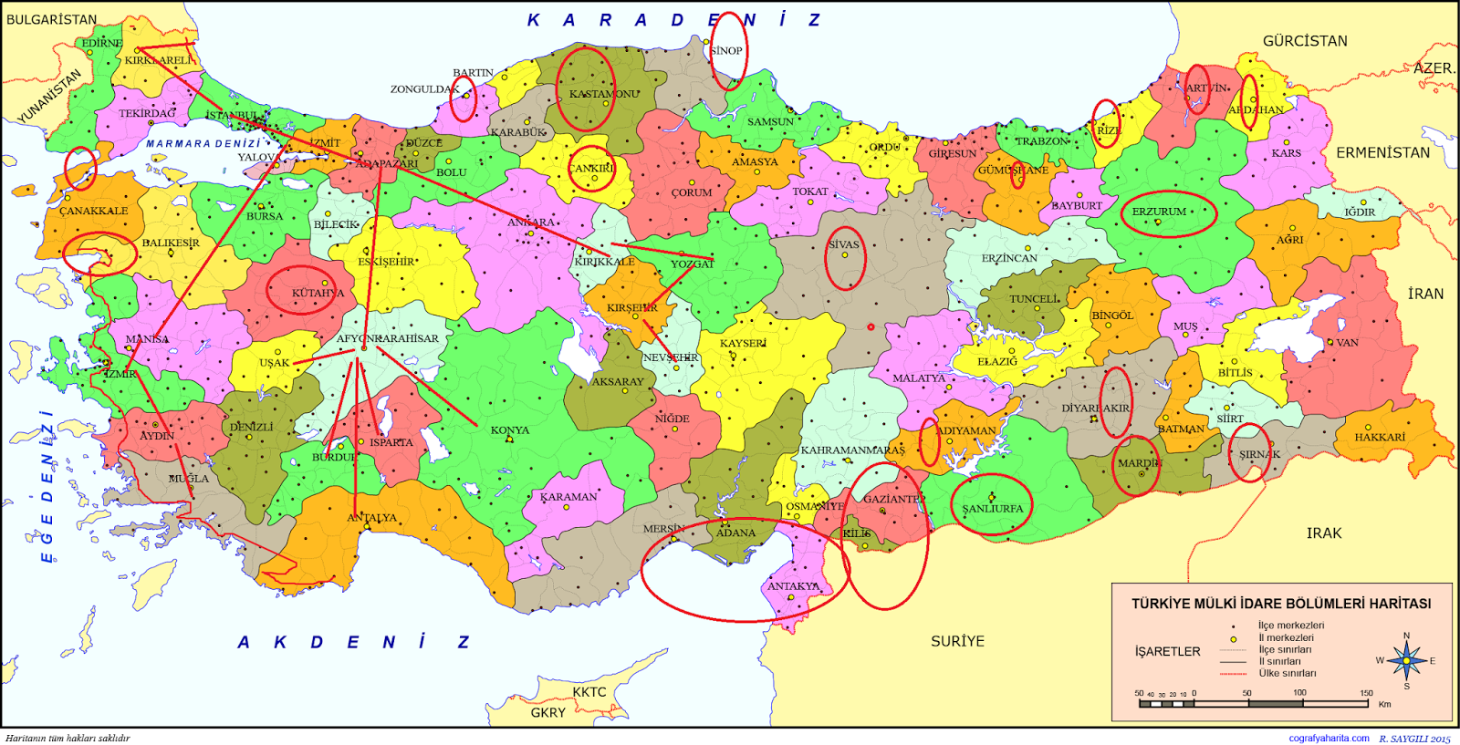 Mavi bondlu yerler daha önce gezip gördüğümüz “bidaha” görmek istediğimiz